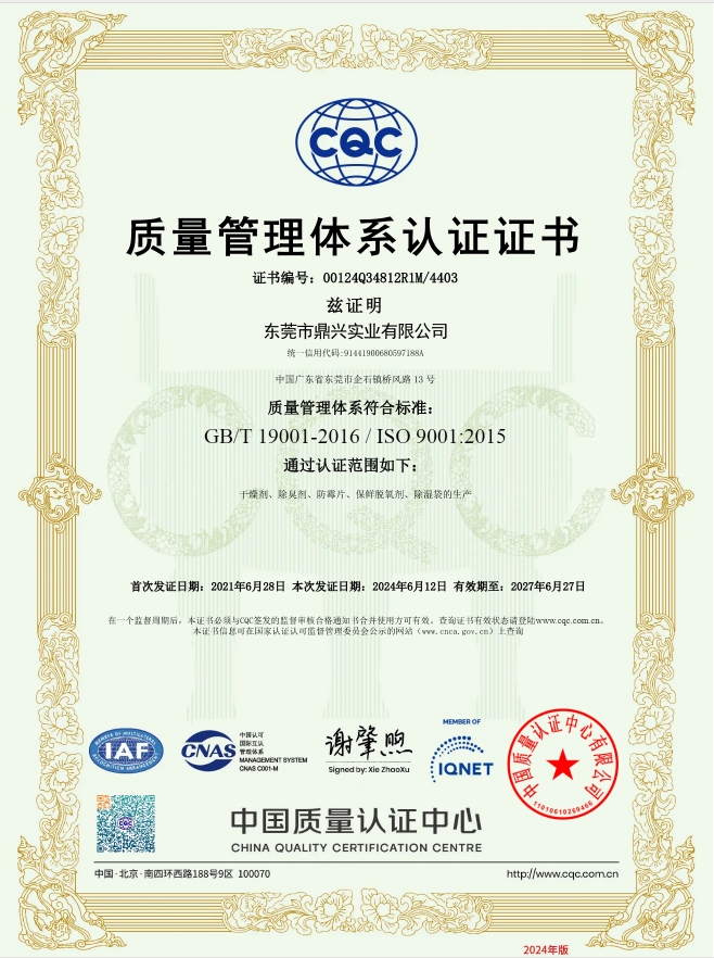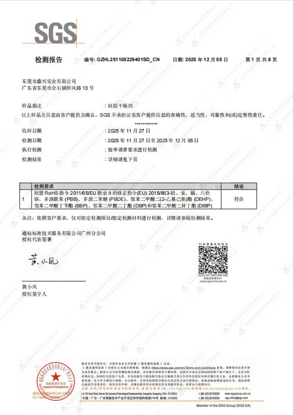 硅膠干燥劑ROHS證書